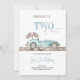 Eleva tu próxima celebración de cumpleaños con nuestra tarjeta de invitación de cumpleaños "DOS RÁPIDOS". Con un encantador coche retro azul pastel con una bandera a cuadros y un lúdico tipo de letra "Two Fast", esta invitación marca el tono perfecto para una celebración emocionante y nostálgica. Personalizable con los detalles de tu evento, promete hacer tu día especial aún más memorable.