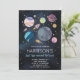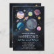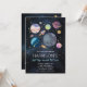 El texto es todo editable utilice la invitación para cualquier celebración de temas del espacio. Perfecto para un primer viaje alrededor del cumpleaños del sol. Cuenta con planetas, luna, cohete, estrellas, meteorito y un cielo en el espacio oscuro.