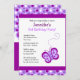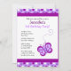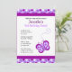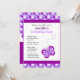 Invitación de cumpleaños a mariposa púrpura y puntos de polka