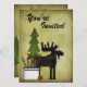 Invitación a la fiesta de cumpleaños de Silhouette Moose, de montaña rusa personalizada, con fondo verde.