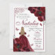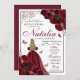 Invitación de cumpleaños a Quinceanera con flores de borgoña