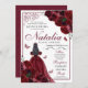 Invitación de cumpleaños a Quinceanera con flores de borgoña