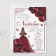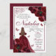 Invitación de cumpleaños a Quinceanera con flores de borgoña