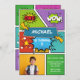 ¡Vaya, qué explosión! Diseñamos esta invitación para que sientas que has entrado en un libro de historietas clásico, con cada panel repleto de color y acción. ¿La historia detrás? Un grupo de aspirantes a superhéroes (¡sus invitados!) están siendo llamados a una misión de alto secreto: ¡celebrar un héroe de cumpleaños muy importante! Con colores vivos y audaces y divertidos efectos de sonido como "¡OMG!" y "¡WOW!", esta invitación es el comienzo perfecto para una aventura de cumpleaños inolvidable y llena de acción.