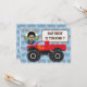 La invitación de cumpleaños de este muchacho es una nueva toma de un viejo diseño. Cuenta con un camión monstruo rojo y un fondo de patrón de camión monstruo con esténcil. Hay un marco circular en la parte superior izquierda de la invitación para la fotografía de tus niños. La parte trasera de la invitación incluye el camión monstruo rojo y un área blanca para los detalles del fiesta. La invitación de cumpleaños de este niño al camión monstruo rojo está lista para ser personalizada.