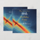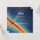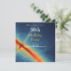 Una fresca y cósmica invitación para una fiesta de cumpleaños número 50. Un diseño abstracto dinámico e interesante. Un color azul profundo con remolinos de círculos azul claro y espirales que se mueven hacia arriba y hacia afuera desde un centro alargado naranja brillante y amarillo. Parece una peonza o el centro de una galaxia con luz que estalla hacia adelante.