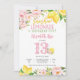 Celebra con estilo con esta alegre invitación de cumpleaños floral y de limón, perfecta para el día especial de un adolescente. Con vibrantes limones y flores rosadas de acuarela, este diseño aporta un ambiente fresco y soleado a los detalles de tu fiesta. Ideal para cumpleaños de verano, esta invitación personalizable facilita compartir información del evento mientras agrega un toque de encanto. Los invitados amarán la apariencia juguetona y elegante, haciendo que tu celebración sea inolvidable.