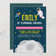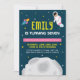 Invitar a amigos y familiares a una salida de este cumpleaños espacial mundial con esta invitación de cumpleaños que incluye a un astronauta chica con un tono de piel oscura en el espacio rodeado por la luna, las estrellas y un transbordador espacial. Esta invitación tiene un patrón en la parte trasera. Personalice esta invitación de cumpleaños reemplazando el texto del marcador de posición en la plantilla para agregar su información. Para obtener más opciones, como cambiar el tipo de letra y su tamaño, haga clic en el botón "Personalizar". *Tenga en cuenta que la marca de agua Zazzle que aparece en la vista previa del zoom NO aparecerá en el producto impreso final. Algunos gráficos de Prettygrafik Design (https://www.etsy.com/shop/Prettygrafikdesign) Card de © Rosewood y Citrus