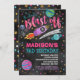 Invitación a cumpleaños espacial Todos los diseños son © PIXEL PERFECTION FIESTA LTD