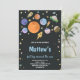 ¡Haga que su hijo/a sea cumpleaños fuera de este mundo con esta vibrante invitación al espacio exterior! Con un barco para cohetes, planetas coloridos y un fondo de galaxia, este diseño editable es perfecto para astronautas jóvenes y fanáticos del espacio. Personalice los detalles de su evento fácilmente utilizando las herramientas de personalización de Zazzle. ¡Genial para niños o chicas que aman estrellas, cohetes y aventuras espaciales!