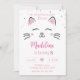 La plantilla de invitación de cumpleaños de Kitten es perfecta para la fiesta de cumpleaños del chica. La invitación con temática de Gato Kitty está llena de elementos de diseño divertidos y lindos como la cara de gatito, los whiskys, la pata de gato y más. El cumpleaños de los niños es especial y esta invitación puede ayudarle a hacer un memorable fiesta de cumpleaños