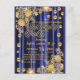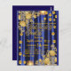 Invitación de cumpleaños azul real dorado para muj