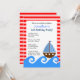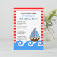 Invitación de cumpleaños azul y rojo en barca marina, 5x7