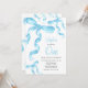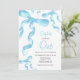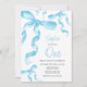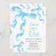Invitación de cumpleaños con arco de coqueta azul acuarela.