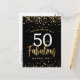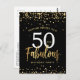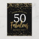 Tarjeta postal de invitación de cumpleaños elegante moderna cincuenta y fabulosa. El diseño presenta caligrafía cincuenta y fabuloso en un fondo negro y confeti dorado.
