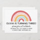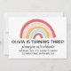 Invitación a la fiesta de cumpleaños arcoiris en colores retro.