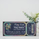 Adéntrate en un mundo de misterio y elegancia con esta invitación de entrada para una fiesta de disfraces de lujo. Con una impresionante máscara emplumada en tonos azul verdoso y dorado sobre un fondo dorado brillante, este diseño es perfecto para un cumpleaños número 18, Sweet 16 o cualquier gala formal. El diseño único en formato de entrada incluye un código de barras realista y un aspecto perforado, lo que hace que tus invitados sientan que tienen un pase VIP para un evento exclusivo. Personaliza fácilmente el nombre, la fecha y el lugar para adaptarlo a tu celebración.