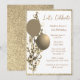 Esta invitación de diseño chic presenta globos de fiesta dorados y de bronce y brillo falso. Personaliza esta invitación de plantilla con los detalles de tu fiesta de cumpleaños.