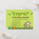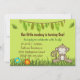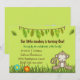 Una invitación de cumpleaños con tema de mono adorable. Un mono kawaii sentado en la hierba con un par de flores lindas. Un banner de hojas de junge en la parte superior. Personalice con los detalles de su fiesta de cumpleaños.
