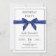 Invitación de cumpleaños con elegante lazo azul ma