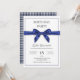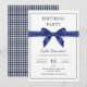 ¡Invite a sus invitados con una elegancia impresionante! Esta elegante invitación de cumpleaños de 5x7 presenta un sofisticado lazo de satén azul marino que eleva instantáneamente su evento. Perfecta para cumpleaños de adultos (21, 30, 40, 50) o cualquier celebración especial que requiera un toque de lujo y clase. El fondo blanco limpio mantiene el enfoque en el hermoso lazo, mientras que el diseño opcional de la parte posterior presenta un pequeño patrón de gingham azul marino coordinado para un acabado simple y encantador. Este diseño es personalizable sin esfuerzo y establece un tono hermoso y formal para su fiesta, lo que garantiza que su invitación se destaque como verdaderamente especial.