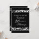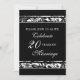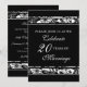 Tarjeta de invitación de cumpleaños para la fiesta de aniversario de bodas número veinte con un elegante patrón floral en blanco y negro, delicado y formal. Personalizable con los detalles de su fiesta.