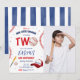Invitación de cumpleaños con foto de béisbol blanca y roja