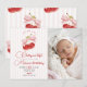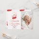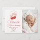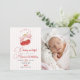 Agrega tu foto favorita a esta invitación de cumpleaños "Pequeña Cereza". Incluye el encantador diseño de cereza roja y lazo rosa, lo que la convierte en un recuerdo perfecto para el primer hito de una niña.