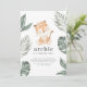 Una invitación que presenta un dulce tigre de acuarela con hojas verdes a los lados y tu foto en la parte posterior. ¡Perfecto para tu fiesta de cumpleaños con tema de tigre!