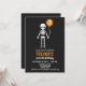 Celebra con estilo impactante con esta Invitación de cumpleaños con globo esqueleto minimalista. Un fondo negro elegante amplifica el encanto del esqueleto de dibujos animados bailando, sosteniendo juguetonamente un globo, perfecto para aquellos que aman el diseño limpio y moderno con un toque de estilo peculiar. Esta invitación invita a la creatividad y al impacto visual mientras mantiene una elegante simplicidad. Ideal para fiestas de cumpleaños chic y celebraciones memorables.