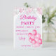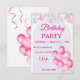 Celebra su día especial con esta elegante invitación de cumpleaños acuarela. Con un ramo de globos rosados vibrantes y serpentinas festivas, este diseño chic y moderno es perfecto para cumpleaños de niñas, dulces dieciséis o cualquier celebración con tema rosa. Totalmente personalizable e impresa en cartulina de alta calidad.