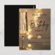 Haz que tu celebración sea inolvidable con esta Invitación de Cumpleaños de Luces Doradas de Lujo, que presenta una elegante copa de champán y suaves luces doradas de bokeh para un toque moderno y elegante.