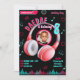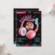 Celebra el cumpleaños de tu hijo con esta invitación temática de música. Agrega tu foto y detalles de la fiesta. Negro, azul y rosa.