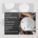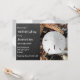 Tarjetas de invitación de cumpleaños negras con pizarra oscura con un gran dólar de arena. Celebración de fiesta temática de playa para él o ella, tiene fuentes impresas modernas y altas en forma de plantilla. Opciones de esquina con muescas u otros bordes.