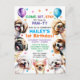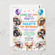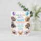 Invitaciones de cumpleaños con tema de perro. Para niño o niña. Ilustración de cachorro feliz y sonriente diseñada con confeti y globos rodeados de razas pequeñas populares como shih tzu, pug, maltese, chihuahua, poodle y beagle. Todo el texto es editable con el nombre del niño, edad, hora de la fiesta, dirección y RSVP.