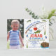 Esta invitación de cumpleaños con tema de pesca en acuarela o "se fue a pescar" podría ser lo que estás buscando. El diseño presenta una caña de pescar, peces, flotador de pesca, algunos señuelos de plumas, bote y cottontail sobre un fondo blanco. La foto de tu pequeño aparece en el lado izquierdo de la invitación. La parte trasera de la invitación es un lavado de acuarela azul con un patrón de líneas onduladas blancas. Esta invitación de cumpleaños con tema de pesca para niños, "reel emocionado" o "se fue a pescar" está lista para ser personalizada. Para ver más diseños, por favor visita la tienda.