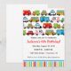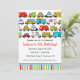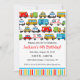 Invitación de cumpleaños con tema de transporte con muchos coches y vehículos diferentes