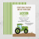 Invitación de cumpleaños con tractor en verde