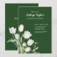Bellos tulipanes blancos de acuarela sobre un fondo verde de jardín para fiestas de cumpleaños de primavera.
