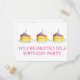 Perfecto para una fiesta de cumpleaños, este diseño de invitación de tarjeta postal presenta una fila de rebanadas de pastel de cumpleaños rosa y amarillo. Solo personalice con la información de su evento.
