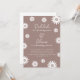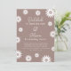 Una invitación al cumpleaños estilo boho con un fondo de color rosa y tierra con flores de margarita blanca.