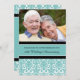 Tarjeta de invitación de cumpleaños de 50 años con foto personalizada en azul turquesa elegante, patrón de damasco floral clásico en negro y blanco, delicado y moderno. Personalizable con los detalles de tu fiesta y tu propia foto.