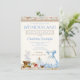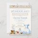 Invitación de cumpleaños de Alice en el país de las maravillas con hermoso vestido azul de acuarela, tazas de té, sombrero, reloj, llave, etc., en un fondo vintage. Esta invitación de cumpleaños con tema de cuento de hadas de Alice en el país de las maravillas se personaliza fácilmente para su evento simplemente agregando sus datos.