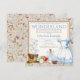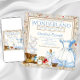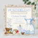 Invitación de cumpleaños de Alice en el país de las maravillas con hermoso vestido de acuarela, tazas de té, sombrero, reloj, llave, etc., en un fondo vintage. Esta invitación de cumpleaños con tema de libro de cuentos de Alice en el país de las maravillas se personaliza fácilmente para su evento simplemente agregando sus detalles.