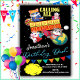Negro, chico "Llamando a todos los superhéroes", invitación de cumpleaños animal que incluye lindos zorros superhéroes, vacas y animales gatitos en el espacio exterior. Texto de edad modificable.