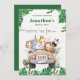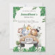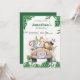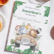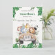 Animales de la selva y hojas de palma verdes, invitación mínima a la fiesta de cumpleaños de los niños—lindos animales personalizados, ilustracion de acuarelas con fondo blanco y tipografía de personalizable verde y negro.
