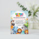 Invite a los amigos de su hijo a una fiesta de cumpleaños inolvidable con temática de zoológico con esta adorable invitación que presenta un grupo alegre de animales de zoológico bajo un cielo brillante y azul. Perfecto para niños amantes de los animales, este diseño encantador establece un tono divertido y aventurero para cualquier celebración.