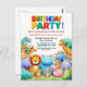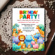 Invite a los amigos de su hijo a una fiesta de cumpleaños inolvidable con tema de zoológico con esta adorable invitación que presenta a un grupo alegre de animales del zoológico. Perfecto para niños amantes de los animales, este encantador diseño establece un tono divertido y aventurero para cualquier celebración.