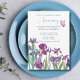 Invitación de fiesta de aniversario de acuarela de flor de Iris con jardín floral de acuarela morada se puede personalizar fácilmente.