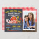 Esta tierna foto que se une a la invitación a la fiesta de cumpleaños de barnyard presenta un granero rojo, un cerdo, una vaca y un caballo. El fondo es una imagen escaneada de pizarra en un lado de la invitación. La fotografía de tu hijo aparece en un marco blanco en el lado derecho. Esta es una manera linda de invitar a los amigos de sus hijos a su fiesta de cumpleaños temática. Esta invitación conjunta a la fiesta de cumpleaños de barnyard en el pizarrón es adecuada para una variedad de edades y está lista para ser personalizada.